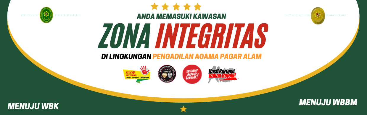 - Jumat, 10 April 2026 PA Pagar Alam Ikuti Sosialisasi Hasil Penilaian Zona Integritas Menuju WBK dan WBBM oleh PTA Palembang